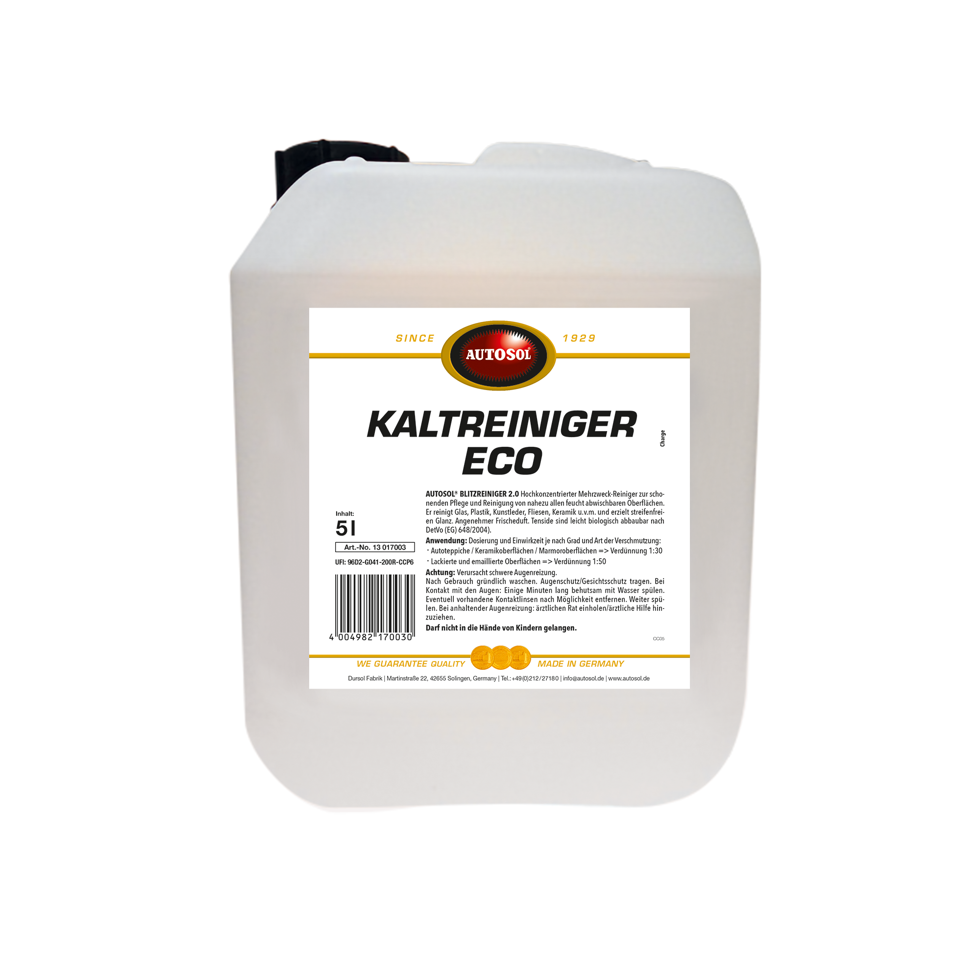 Produktinformationen "AUTOSOL Kaltreiniger Eco 5l - Hochwirksam gegen Öl & Fett"