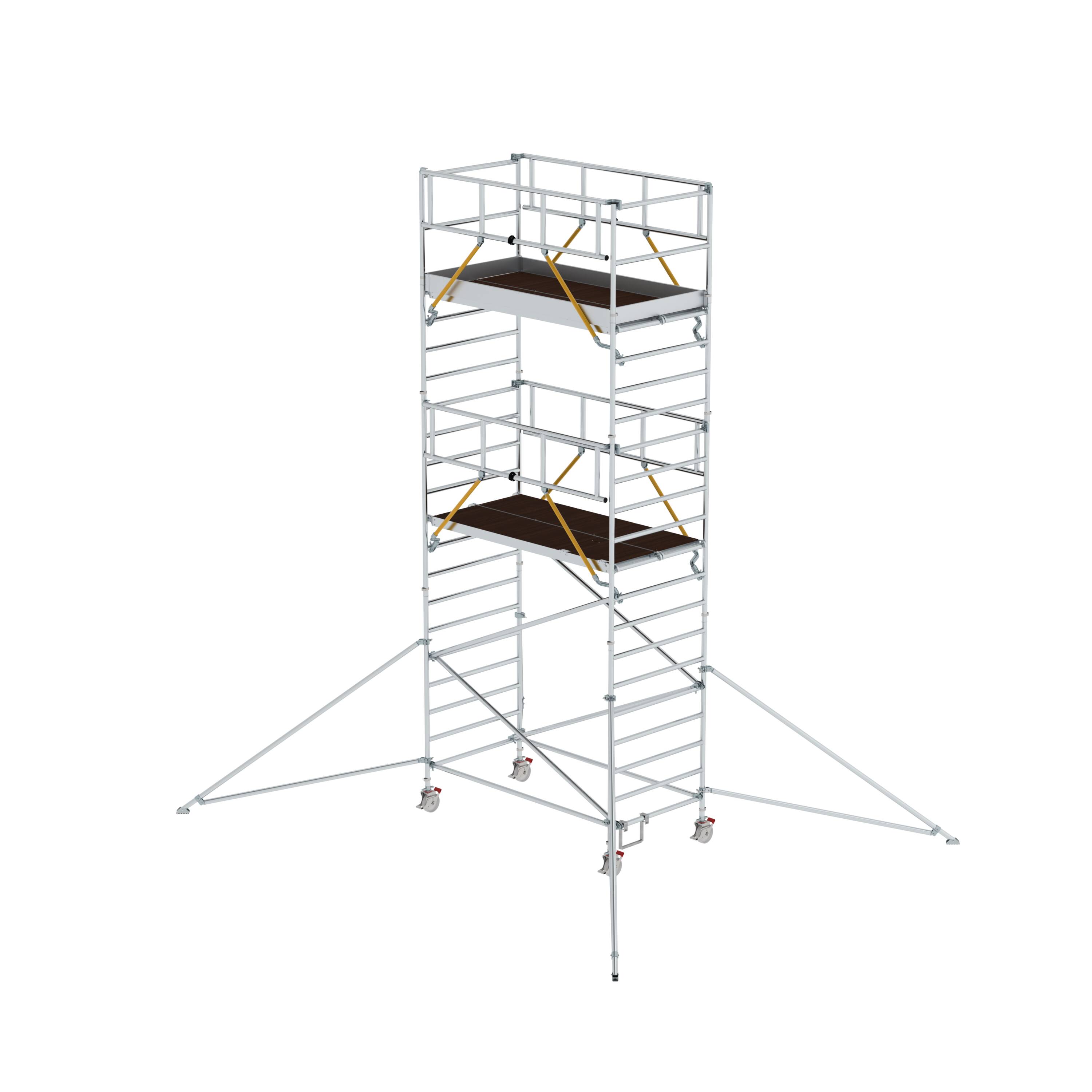 Produktinformationen "Alu-Rollgerüst 1,35x2,45m - Plattformhöhe 5,59m - Klappbare Ausleger"