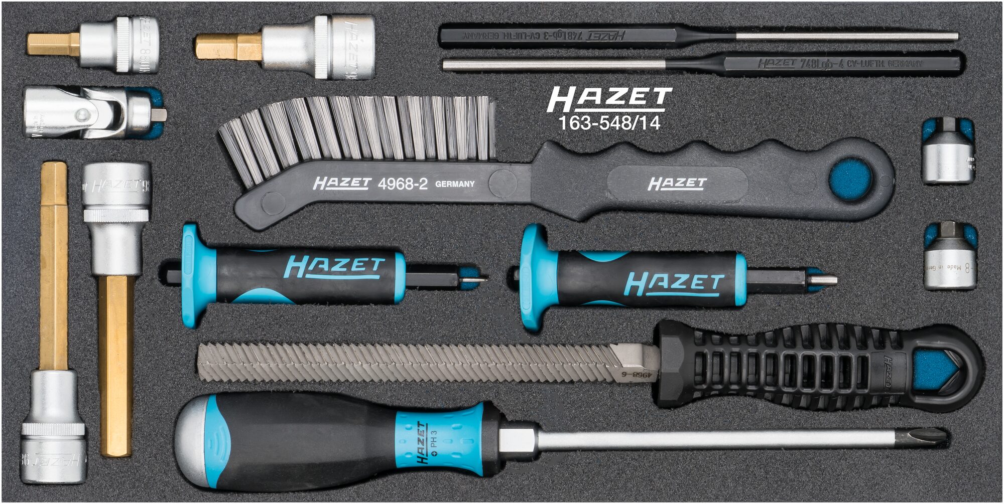 - Das Hazet Safety-Insert-System (SIS) gewährleistet die rüttelfeste Einbettung aller Werkzeuge.