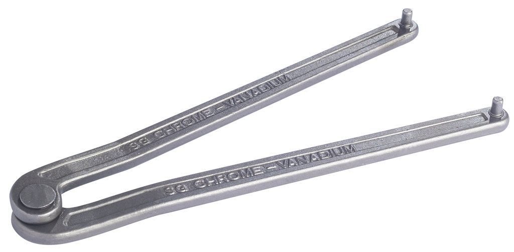 Da die Zapfen dieses Schlüssels genietet sind und einen Durchmesser von 4,1 mm haben, eignet er sich hervorragend für alle Zweilochmuttern ab einem Abstand von 11 mm.