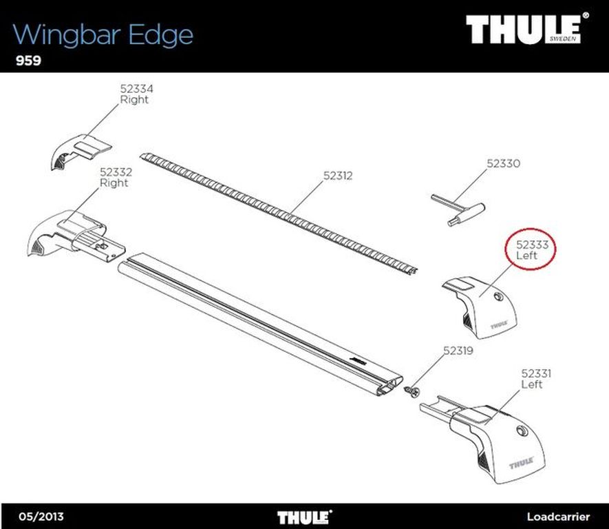 Beim Kauf dieses Produkts erhältst Du eine Abdeckkappe links - 52333. Die Abbildung zeigt die Ersatzteilzeichnung Wingbar Edge 959. So siehst Du auf einen Blick, welche Teile Dein Paket beinhaltet und wie diese zu verwenden sind.