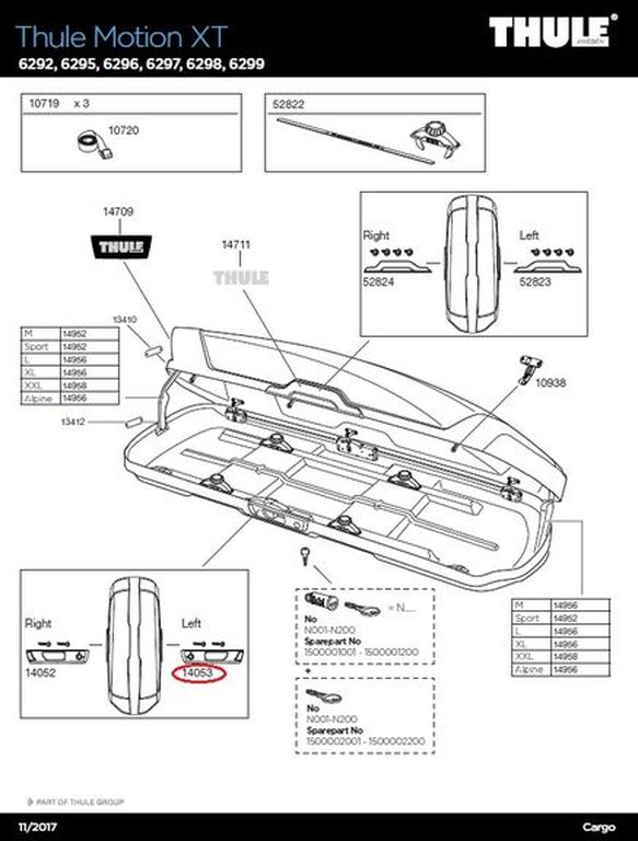 - Lieferumfang: 1x Deckel-Schließaufnahme links (Illustration zeigt Ersatzteilzeichnung Thule Motion XT Dachbox)